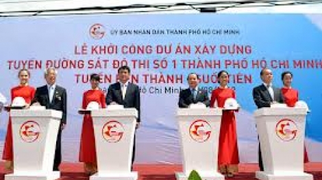 (VOV5) - Tuyến đường sắt đô thị số 1 từ Bến Thành-Suối Tiên, Thành phố HCM đã được chính thức khởi công xây dựng hôm nay. Tuyến đường dài hơn 20km có tổng vốn đầu tư khoảng hơn 17 nghìn tỷ đồng, trong đó chiếm 83% là nguồn vốn vay ODA của Chính phủ Nhật Bản, dự kiến sẽ được hoàn thành và đưa vào sử dụng đầu năm 2018.