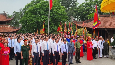 (VOV5) - Lãnh đạo tỉnh Phú Thọ dâng hương, hoa, lễ vật bày tỏ lòng biết ơn, tưởng nhớ công lao Đức Quốc Tổ Lạc Long Quân đã khởi dựng cơ đồ và đặt nền móng cho dân tộc Việt Nam.