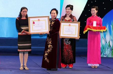 | Phó Chủ tịch nước Nguyễn Thị Doan trao Huân chương Lao động hạng Ba cho các tập thể, cá nhân có thành tích xuất sắc. Ảnh: Viết Thành |