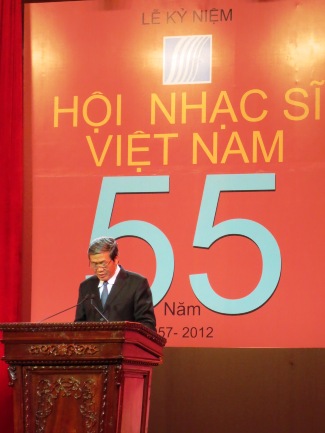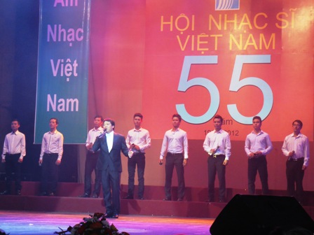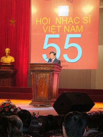 (VOV5) - Tối 29/12 tại Nhà hát lớn Thành phố Hà Nội, Hội Nhạc sĩ Việt Nam tổ chức lễ kỷ niệm 55 năm ngày thành lập (1957 -2012). Đến dự có ông Đinh Thế Huynh,Ủy viên BCT, Bí thư TW Đảng, Trưởng ban Tuyên Giáo Trung ương và đại diện Lãnh đạo các Bộ, ban ngành và hàng trăm nhạc sĩ các thế hệ.