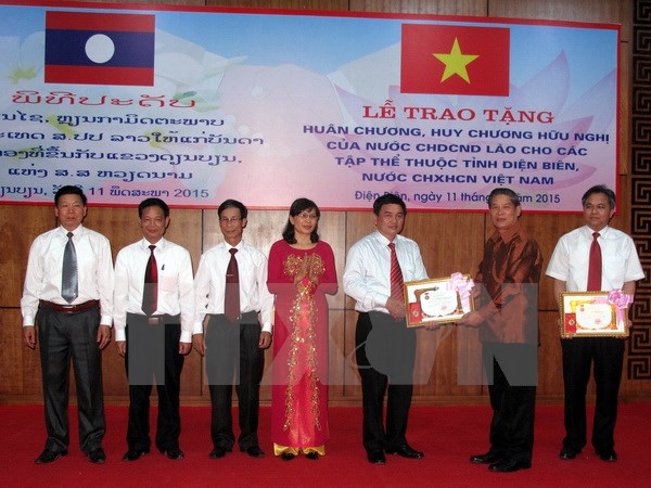 Ông Sai Sạ Mỏn Khôm Thạ Vông, Phó Tỉnh trưởng tỉnh Luông Pha Bang, thừa ủy quyền của Chủ tịch nước và Thủ tướng nước Cộng hòa Dân chủ Nhân dân Lào trao tặng Huân chương Hữu nghị cho Ủy ban nhân tỉnh Điện Biên và Sở Giáo dục và Đào tạo tỉnh Điện Biên; Huy chương Hữu nghị cho trường Cao đẳng Sư phạm, trường Cao đẳng Kinh tế - kỹ thuật, trường Cao đẳng Y tế và Trung tâm Giáo dục thường xuyên tỉnh Điện Biên./.