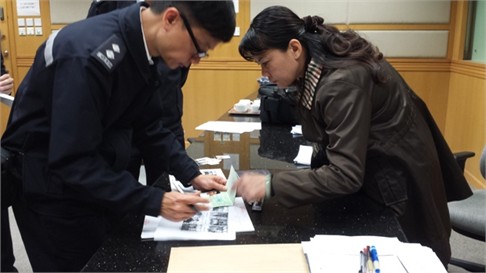 | Cán bộ TLSQ phối hợp cùng Cục Di trú Hong Kong làm thủ tục đưa ngư dân về đoàn tụ cùng gia đình. (Ảnh: baohatinh) |