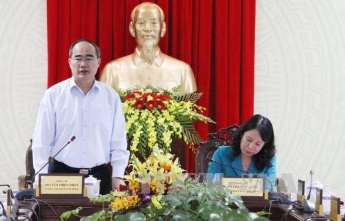 | Đồng chí Nguyễn Thiện Nhân, Ủy viên Bộ Chính trị, Chủ tịch Ủy ban Trung ương Mặt trận Tổ quốc Việt Nam cùng đoàn công tác thăm và làm việc tại tỉnh An Giang.Ảnh: baotintuc.vn |