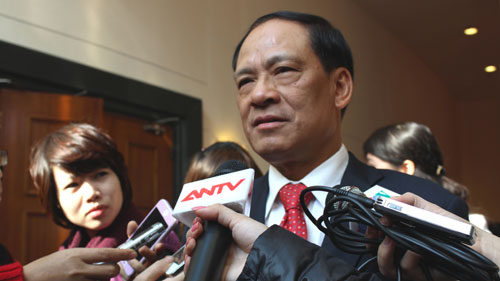 | Tổng Thư ký ASEAN Lê Lương Minh trả lời phỏng vấn báo giới bên lề hội thảo |