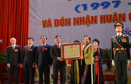 | Phó Chủ tịch nước Nguyễn Thị Doan trao tặng Huân chương Hồ Chí Minh cho Đảng bộ và nhân dân tỉnh Bắc Ninh. |