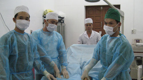 | Các bác sỹ đang thực hiện ca mổ cho anh Sáu |