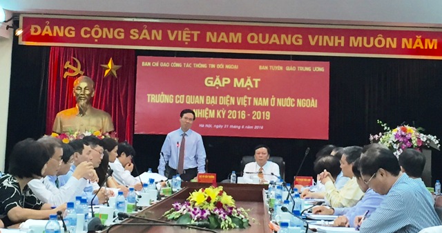 (VOV5) - Chiều 21/6, tại trụ sở Ban tuyên giáo Trung ương, Ban Tuyên giáo Trung ương phối hợp với Ban chỉ đạo công tác thông tin đối ngoại tổ chức buổi gặp gỡ với các trưởng cơ quan đại diện Việt Nam tại nước ngoài nhiệm kỳ 2016-2019.