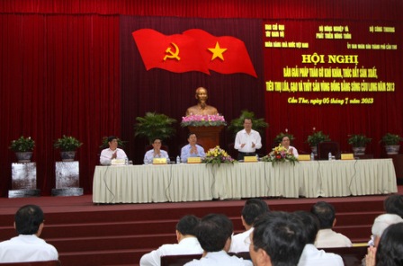 (VOV5) - Sáng nay (05/07), tại Cần Thơ, diễn ra Hội nghị bàn giải pháp tháp gỡ khó khăn, thúc đẩy sản xuất tiêu thụ lúa gạo, thủy sản vùng Đồng bằng sông Cửu Long. Tham dự Hội nghị có Phó Thủ tướng Vũ Văn Ninh. Tại hội nghị, Bộ Nông nghiệp và Phát triển nông thôn cho biết năm nay sản xuất nông nghiệp của Việt Nam phải đối mặt với nhiều khó khăn, thách thức, nhu cầu và giá cả nhiều mặt hàng nông sản trên thị trường thế giới liên tục giảm, cộng với sức mua trong nước giảm sút… tác động mạnh đến sản xuất kinh doanh của ngành nông nghiệp, làm giảm thu nhập của người nông dân.
