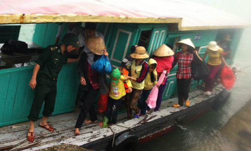 | Bộ đội biên phòng giúp người dân huyện đảo Cát Hải sơ tán khỏi khu vực nguy hiểm. Ảnh: Hoàng Thủy. |