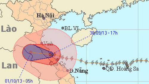 Hồi 17 giờ ngày 30/9, vị trí tâm bão ở vào khoảng 17,6 độ Vĩ Bắc; 106,5 độ Kinh Đông, trên địa phận các tỉnh Hà Tĩnh – Quảng Bình. Sức gió mạnh nhất ở vùng gần tâm bão mạnh cấp 11 (tức là từ 103 đến 117 km một giờ), giật cấp 12, cấp 13.