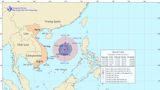 Dự báo trong 24 giờ tới, bão di chuyển chậm theo hướng Đông Nam, mỗi giờ đi được khoảng 5 km và có khả năng mạnh thêm. Đến 4h ngày 3/10, vị trí tâm bão ở vào khoảng 16,2 độ Vĩ Bắc; 115,4 độ Kinh Đông, cách quần đảo Hoàng Sa khoảng 350 km về phía Đông Đông Nam. Sức gió mạnh nhất vùng gần tâm bão mạnh cấp 8, cấp 9 (tức là từ 62-88 km/h), giật cấp 10, cấp 11.