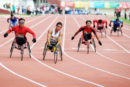 | Các vận động viên khuyết tật thi tài trên đường đua xe lăn (Ảnh: Báo Nhân dân) |