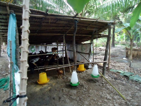 | Xã Nhơn Thạnh thực hiện Mô hình giảm nghèo - Mô hình nuôi gà thả vườn. (Ảnh: thanhphobentre.bentre.gov.vn) |