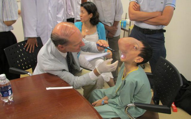 | Bác sỹ McKay McKinnon khám trước mổ cho Tuấn. (Ảnh: Vingroup) |