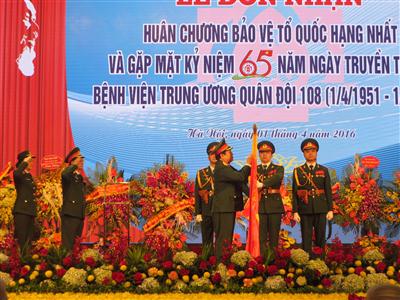 (VOV5) - Sáng 1/4 tại Hà Nội, Bệnh viện Trung ương Quân đội 108 tổ chức Lễ đón nhận Huân chương Bảo vệ Tổ quốc hạng Nhất và gặp mặt các thế hệ lãnh đạo, cán bộ, nhân viên của Bệnh viện qua các thời kỳ nhân kỷ niệm 65 năm ngày truyền thống (1/4/1951-1/4/2016). Tổng Bí thư Ban chấp hành Trung ương Đảng Cộng sản Việt Nam Nguyễn Phú Trọng đến dự.