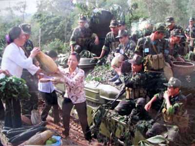 | hân dân địa phương tặng quà động viên bộ đội Tăng-Thiết giáp trên bãi tập. (Ảnh:qdnd) |