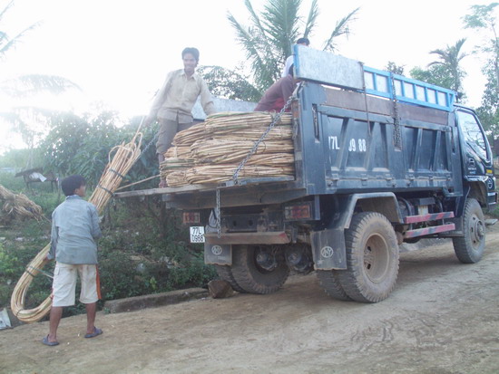 | Người dân xã An Toàn huyện An Lão vận chuyển mây lên xe. |