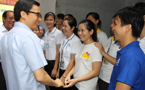 | Công nhân vui mừng khi được gặp Phó Thủ tướng. (Ảnh: N.Phú/Người lao động) |