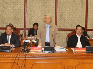 (VOV5)- Sáng nay, tại Trụ sở Trung ương Đảng, Bộ Chính trị làm việc với Ban Thường vụ Tỉnh ủy Khánh Hòa về Đề án phát triển tỉnh Khánh Hòa đến năm 2020. Tổng Bí Thư Nguyễn Phú Trọng chủ trì buổi làm việc.