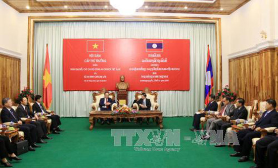 Tại cuộc hội đàm diễn ra chiều 15/2, giữa Bộ Công an Việt Nam và đoàn Bộ An ninh Lào do Thứ trưởng Sinthavong Sayakon dẫn đầu, hai bên thống nhất trong năm 2017 tiếp tục duy trì và tăng cường tiếp xúc cấp cao giữa lãnh đạo hai bộ, giữa các đơn vị, công an địa phương nhằm trao đổi thông tin, chia sẻ kinh nghiệm trong đấu tranh phòng, chống các loại tội phạm; tăng cường hợp tác đào tạo, bồi dưỡng cán bộ, hậu cần - kỹ thuật.