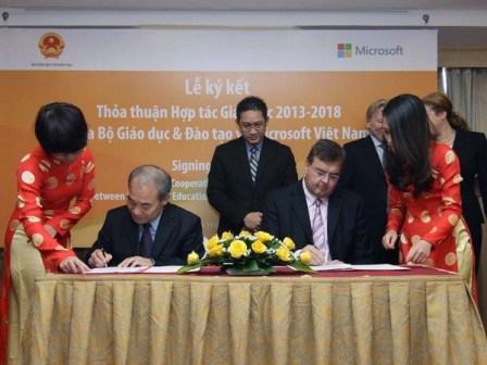 (VOV5) - Hai bên đã ký kết một thỏa thuận hôm nay, 19/11, tại Hà Nội, nhằm nâng cao năng lực ứng dụng công nghệ thông tin vào trường học giai đoạn 2013-2018.