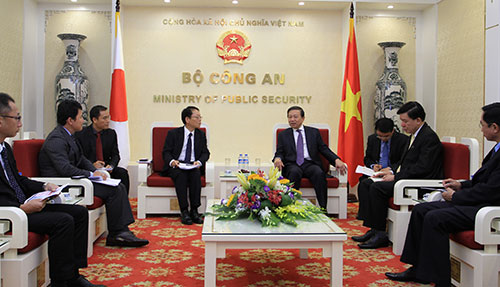 | Bộ trưởng Tô Lâm, ngài Yasuo Fujita và các đại biểu tại buổi tiếp (Ảnh: cand.com.vn) |