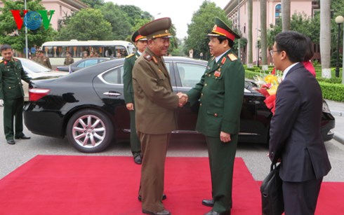 | Bộ trưởng Phùng Quang Thanh đón Bộ trưởng Bộ các lực lượng vũ trang Triều Tiên |