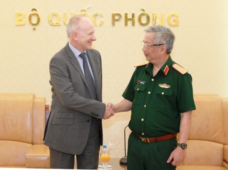 | Thượng tướng Nguyễn Chí Vịnh chào mừng ngài Tim Huxley sang thăm và làm việc tại Việt Nam. Ảnh: infonet.vn |
