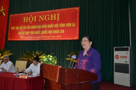 Tại buổi tiếp xúc, Đoàn Đại biểu Quốc hội tỉnh Sơn La thông báo kết quả kỳ họp thứ nhất, Quốc hội khóa XIV; báo cáo hoạt động của đoàn Đại biểu Quốc hội Sơn La tại kỳ họp thứ nhất. Các cử tri tại Thành phố Sơn La đã kiến nghị, đề xuất với Chính phủ, các bộ, ngành Trung ương một số nội dung như: Đề nghị tiếp tục bố trí vốn để triển khai hoàn thành dự án hồ chứa nước bản Mòng, xã Hua La, thành phố Sơn La, phục vụ cho công tác phòng chống lũ trên địa bàn; quan tâm triển khai dự án đầu tư xây dựng dự án đường Quốc lộ 6 đoạn tránh thành phố Sơn La, để giảm mật độ giao thông trong nội thị. Thay mặt đoàn đại biểu tiếp xúc cử tri, Phó Chủ tịch Quốc hội Tòng Thị Phóng ghi nhận và đánh giá cao những ý kiến, nguyện vọng chính đáng của cử tri.