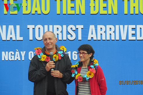 Du khách Quốc tế đầu tiên đến Hà Nội năm 2016 là hai vợ chồng ông bà Buisson Bernard và Florence Bernard, quốc tịch Pháp. Máy bay đưa họ hạ cánh xuống sân bay Nội Bài lúc 6h05 phút sáng nay. Đây cũng là vị khách thuộc diện miễn visa do Chính phủ khuyến khích từ tháng 7/2015 đến Việt Nam theo hành trình xuyên Việt 14 ngày do công ty trách nhiệm hữu hạn Thương mại và Du lịch Phượng Hoàng tổ chức.