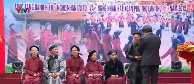| Lễ trao tặng danh hiệu "Nghệ nhân ưu tú" và "Nghệ nhân hát Xoan Phú Thọ" lần thứ 2 tại tỉnh Phú Thọ (Ảnh: vtv.vn) |