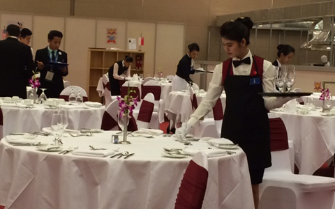 | Thí sinh Nguyễn Thị Hải Triều đang thể hiện bài thi nghề Dịch vụ nhà hàng (Ảnh: vov.vn) |