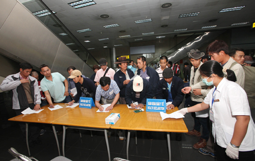 (VOV5) - Hai hành khách người Nigeria có biểu hiện sốt nghi nhiễm Ebola nhập cảnh vào Việt Nam tại sân bay Tân Sơn Nhất (thành phố Hồ Chí Minh) ngày 19/8 trên chuyến bay QR 964 của hãng hàng không Quatar Airway, từ Quatar tới Việt Nam. Theo cơ quan chức năng, ngoài biểu hiện sốt, chưa phát hiện có các triệu chứng khác trên 2 hành khách này.