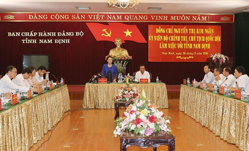 (VOV5) - Phát biểu tại buổi làm việc với lãnh đạo tỉnh Nam Định chiều 26/8, Chủ tịch Quốc hội Nguyễn Thị Kim Ngân khẳng định: về lĩnh vực phân bổ nguồn vốn đầu tư cho các địa phương, Quốc hội sẽ đảm bảo giám sát việc phân bố hợp lí.
