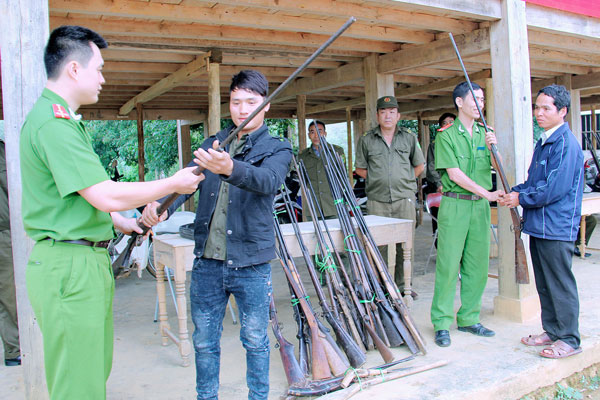 | Nhân dân xã Chiềng Khoa, Vân Hồ, Sơn La tự giác giao nộp vũ khí, vật liệu nổ, công cụ hỗ trợ cho lực lượng chức năng (Ảnh minh họa,. Nguồn: Báo Sơn La) |