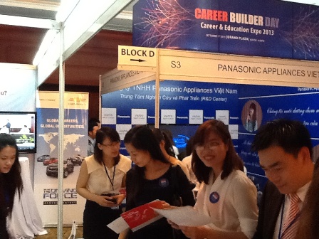 | Các bạn trẻ tìm hiểu thông tin tại Career Builder Day 2013 ở Hà Nội. Ảnh: Ngọc Anh |