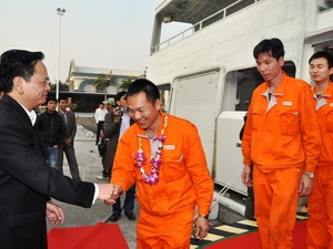 | Tàu Beiyou 16 của Tập đoàn Tân Áo cập cảng Tuần Châu an toàn. (Ảnh: Vietnam+) |