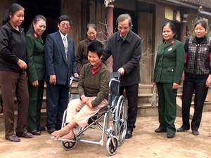 | Tặng quà cho nạn nhân chất độc da cam. (Ảnh: Vũ Văn Đạt/Vietnam+) |