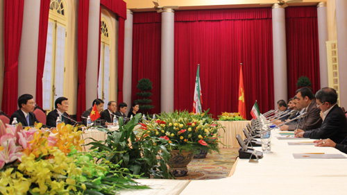 | Chủ tịch nước Trương Tấn Sang và Tổng thống Mahmoud Ahmadinejad đã tiến hành hội đàm |