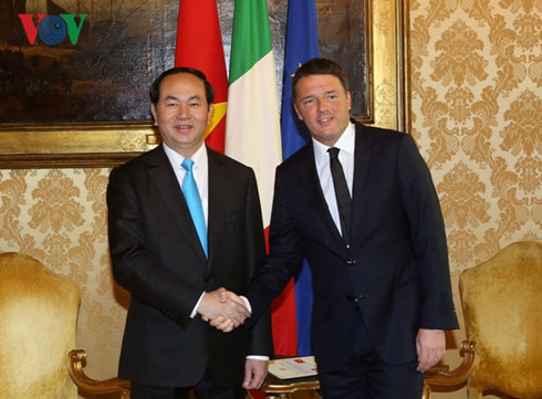 | Chủ tịch nước Trần Đại Quang và Thủ tướng Italia Matteo Renzi. Ảnh: Việt Cường, VOV |