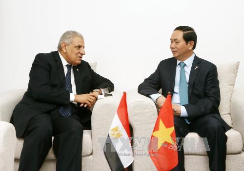 | Chủ tịch nước Trần Đại Quang tiếp Trưởng đoàn Ai Cập Ibrahim Mahlab. Ảnh: Nhan Sáng/TTXVN |