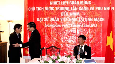 Trong khuôn khổ chuyến thăm Đan Mạch, trưa 20/9 (theo giờ Copenhagen), Chủ tịch nước Trương Tấn Sang đã tới dự Diễn đàn Doanh nghiệp Việt Nam- Đan Mạch. Chủ tịch nước cũng đã có buổi gặp gỡ với Thị trưởng thành phố Copenhagen.
