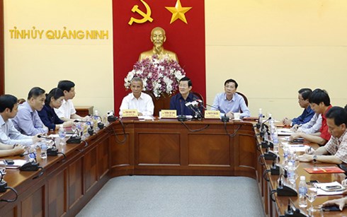 | Chủ tịch nước Trương Tấn Sang đến thăm, động viên Đảng bộ, chính quyền, nhân dân tỉnh Quảng Ninh. |