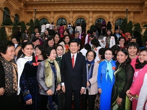 Trước đó, chiều tối 12/3, tại Phủ Chủ tịch, Chủ tịch nước Trương Tấn Sang tiếp gần 100 đại biểu phụ nữ tiêu biểu nhân dịp về dự Đại hội đại biểu phụ nữ toàn quốc lần thứ 11. Tại buổi tiếp, Chủ tịch nước Trương Tấn Sang đánh giá cao vai trò của phụ nữ trong sự nghiệp xây dựng và bảo vệ Tổ quốc,.