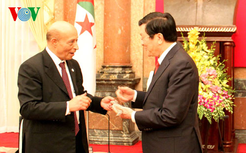 (VOV5) - Tại buổi tiếp Chủ tịch Hạ viện Algeria Larbi Ould Khelifa ngày 29/3, nhân dịp sang Việt Nam dự Đại hội đồng Liên minh Nghị viện thế giới lần thứ 132 (IPU132), Chủ tịch nước Trương Tấn Sang tin tưởng những đóng góp của đoàn hạ viện Algeria sẽ góp phần cho thành công của Đại hội IPU-132.