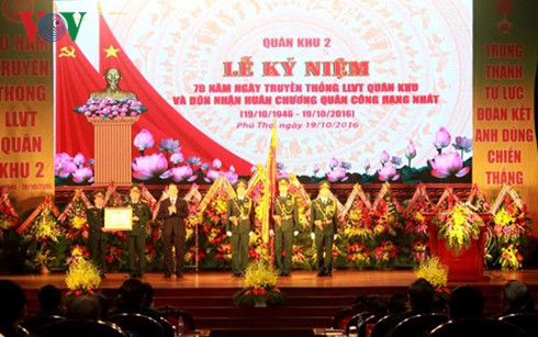 Phát biểu tại lễ kỷ niệm, Chủ tịch nước Trần Đại Quang nêu rõ để thực hiện thắng lợi nhiệm vụ quân sự, quốc phòng trong thời kỳ cách mạng mới, lực lượng vũ trang Quân khu 2 cần chủ động nắm chắc, phân tích, đánh giá và dự báo chính xác tình hình, nhất là những diễn biến liên quan đến quốc phòng, an ninh để chủ động tham mưu với Đảng, Nhà nước, Bộ Quốc phòng có đối sách phù hợp, giữ vững an ninh chính trị, trật tự, an toàn xã hội; bảo vệ vững chắc độc lập, chủ quyền, thống nhất và toàn vẹn lãnh thổ của Tổ quốc trên địa bàn Quân khu. Cùng với đó, thực hiện tốt chức năng là đội quân công tác, tham gia làm tốt nhiệm vụ vận động nhân dân chấp hành đường lối, chính sách của Đảng, pháp luật của Nhà nước, giữ gìn bản sắc văn hoá dân tộc; tích cực tham gia xóa đói, giảm nghèo, phát triển kinh tế, văn hóa, xã hội và phòng, chống thiên tai.