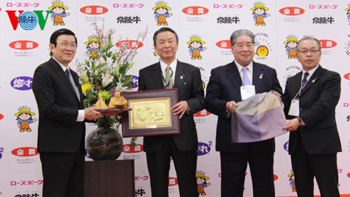 Sau khi rời sân bay, Chủ tịch nước Trương Tấn Sang tới tới thăm tỉnh Ibaraki, tỉnh đứng thứ 2 về nông nghiệp của Nhật Bản. Tại đây, Chủ tịch nước Trương Tấn Sang thăm Trung tâm nghiên cứu nông nghiệp, Trung tâm Máy nông nghiệp và thăm nhà máy chế biến rau tươi sống Asahi nhằm tìm hiểu thực tế các mô hình cũng như công nghệ sản xuất nông nghiệp mang lại hiệu quả cao của Nhật Bản. Chủ tịch nước Trương Tấn Sang tin tưởng qua chuyến thăm mở ra hướng hợp tác mới trong lĩnh vực nông nghiệp giữa tỉnh Ibaraki và các địa phương của Việt Nam.