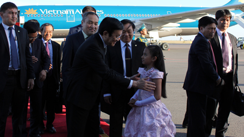Nhận lời mời của Tổng thống Cộng hòa Kazakhstan Nursultan Nazarbayev, chiều tối 9/9 (giờ địa phương), Chủ tịch nước Trương Tấn Sang cùng đoàn cấp cao nước ta đã tới thủ đô Astana, bắt đầu chuyến thăm cấp nhà nước Kazakhstan trong hai ngày (10-11/9).
