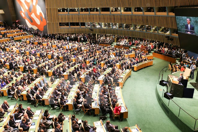 | Một phiên họp toàn thể cấp cao của Đại hội đồng Liên hợp quốc. (Ảnh: TTXVN) |
