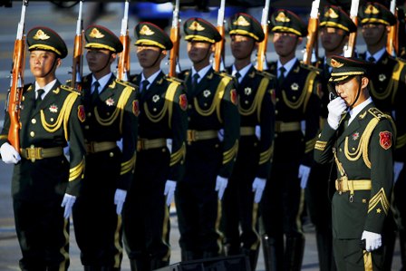 | Binh sĩ của quân đội Trung Quốc trước lễ duyệt binh sáng 3/9 (Ảnh: Reuters) |